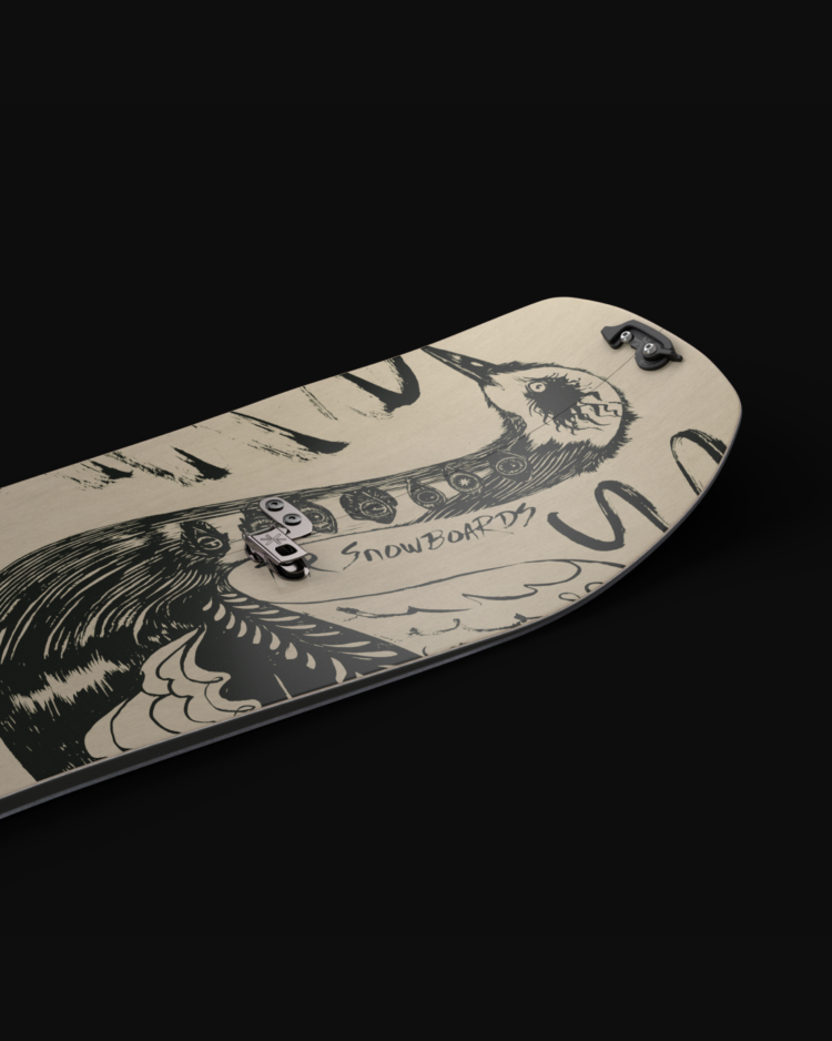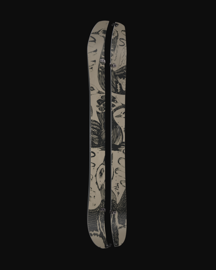 The Tica is a premium directional splitboard board that also rides perfectly backwards, built to work just as well in freestyle terrain as it is in deep powder. Designed with a blunt-shaped nose for superior float and the all-mountain feel with a wider, tapered and square-shaped tail for a longer effective edge while keeping superior float and backwards Maneuverability. The special camber profile with its inlays around the nose and tail allows you to put pressure where it’s needed for maximum load and quick pop back. Made with a premium light wood core blended with a Polyamide Bio Beans topsheet for scratch resistance, carbon inlays for recovery and aluminum tip and tail protectors for durability. While the Karakoram ultra-clip 2.0 and tip-locks hold the board together perfectly. Added to that is the Scando Grip technology with 3-extra contact points on the edges for maximum edge-hold and superior bite on hard pack and icy conditions. With a fast and more durable sintered base that requires less maintenance. This combined with the flex and blend of premium materials gives the board a playful and poppy feel yet incredible stability at higher speeds. If you only choose one board for everything, this is it.
